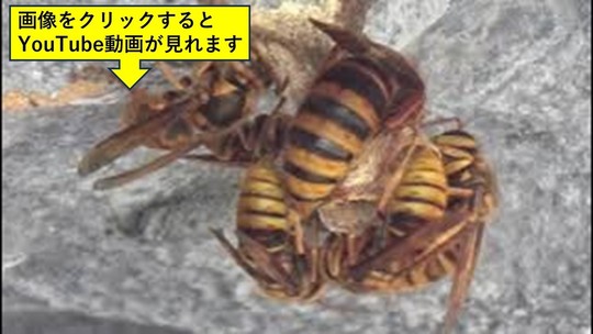 スズメバチの巣の巣穴から殺虫剤を注入することから始まり、巣の撤去まで一連の駆除作業を動画で紹介しています。