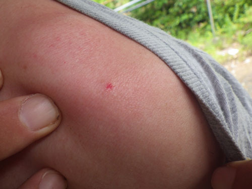 先ずは、指で刺された部分をつまんで蜂毒を絞り出すか、あるいはポイズンリムーバーという道具で蜂毒を吸い出します。