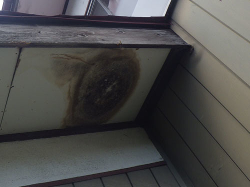 軒裏天井にモンスズメバチの巣があるときの軒裏のシミ