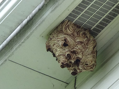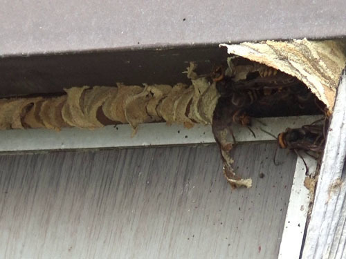 軒下に作ったモンスズメバチの巣