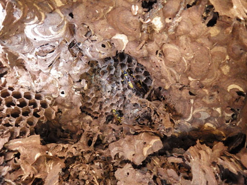 ごくまれに蜂の巣の中にわずかな数のキイロスズメバチやアシナガバチや他のスズメバチが越冬していることがあります。