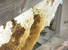 ニホンミツバチが屋根裏に作った巣